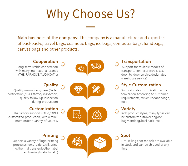 All products can be produced in real leather, PU leather, canvas, denim or nylons as per client requirements.